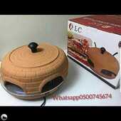 فرن البيتزا الفخاريفرن كهربائي جميل الشكل بغطاء خارجي على شكل قبة مصنوع من الرخام والفخار لتجميع الحرارة، وهو يحتوي على لفات تسخين علوية وسفلية تجعل البيتزا مقرمشة من الأسفل والجبن يعمل بشكل رائع في الأعلى، وفيه حجرات مخصصة للبيتزا تتسع إلى 4 أو 6 قطع حسب موديل الفرن، كما يحتوي على عدد من الملاعق لإدخال وإخراج البيتزا حسب عدد هذه الحجرات