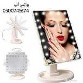 👈هي أحد تصاميم المرايا الحديثة تعمل عن طريق استخدام بطاريات من نوع AA وعبارة عن مرآة مكياج مسطحة من الزجاج محاطة بإطار من الجوانب مع حامل قابل للتعديل ، ويتم توزرع لمبات من مصابيح LED البيضاء على هذا الإطار بشكل مدروس لتتحول المرآة العادية من مجرد مرآة الى مرآة مضيئة تقوم بتوزرع الضوء في جميع الاتجاهات.