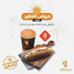 والتي تحتوي على مخبوزة طازجة من الفرن مباشرة إلى يدّك أطلب فطورك وين ما كنت عرض 1 مليوح او صامولي مع شاي او كرك بـ 8 ريال بالاضافة الى عروض بيت الشاروما التي ذكرناها تابعوا عروض المطاعم