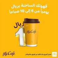 صباحك ما يكمل بدون احتساء الكوفي شوب؟ مرنّا ماك كافيه وكمّل صباحك بكابتشينو ولا أمريكانو أو لاتيه بريال! من الساعة 6إلى 10 صباحًا عبر تطبيق ماكدونالدز . لكن لا تنسى تفعل خاصية السماح بتحديد الموقع في التطبيق عشان يطلع لك العرض! . يومك ما يبدأ بدون كرواسان طازج بطبقاته الهشة من ماك كافيه حياك عندنا بأي وحدة من فروعنا الله يزيد فيها ويبارك . ثم كذلك على موقع عروض تابع احدث الأخبار