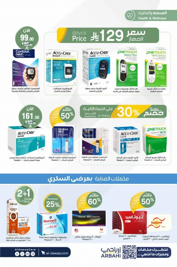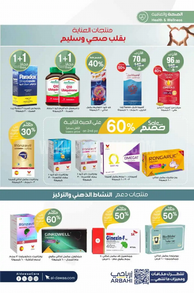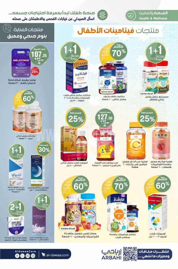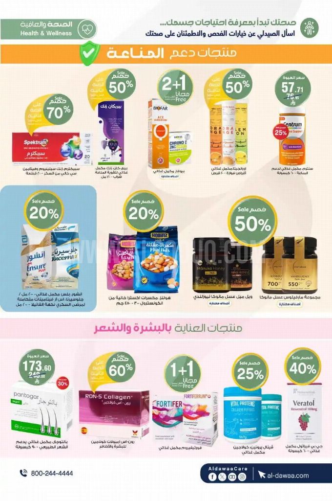 عروض صيدليات الدواء الأسبوعية 14 ديسمبر 2025 الموافق 24 جمادى الآخر 1447 وجهتك لشتاء صحيّ. تألقي في نهاية العام! خصومات الصيدلية الكبرى على جميع منتجات العناية بالبشرة والجمال تنتظرك. صحة عائلتك أولويتنا! عروض التوفير الأقصى على المكملات الغذائية ومستلزمات الطفل الطبية متوفرة الآن. اغتنم أقوى خصومات الموسم على الأدوية والمستلزمات الأساسية للصحة. وابدأ التخطيط لميزانية صحية بذكاء مع قيمة لا تفَوت. عروض صيدليات الدواء اليوم: تجدون ضمن منتجات الأسبوع: بيوديرما سيبيوم جل غسول للبشرة الدهنية . بيوديرما سيبيوم كريم مرطب . أفين كلينانس جل منظف . كذلك أفين كلينانس لوشن منظف . أفين كلينانس كريم . دوكراي كيراكنايل جل منظف . فارماسيرز منظف للبشرة الدهنية. وإليكم الصور الآتية على موقع عروض
