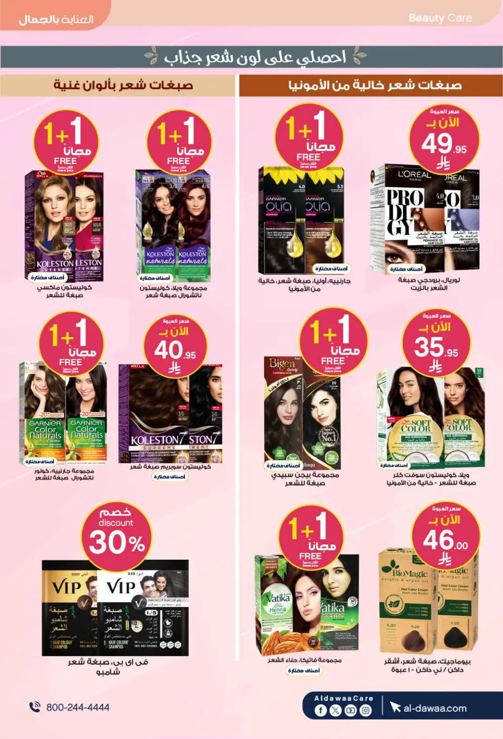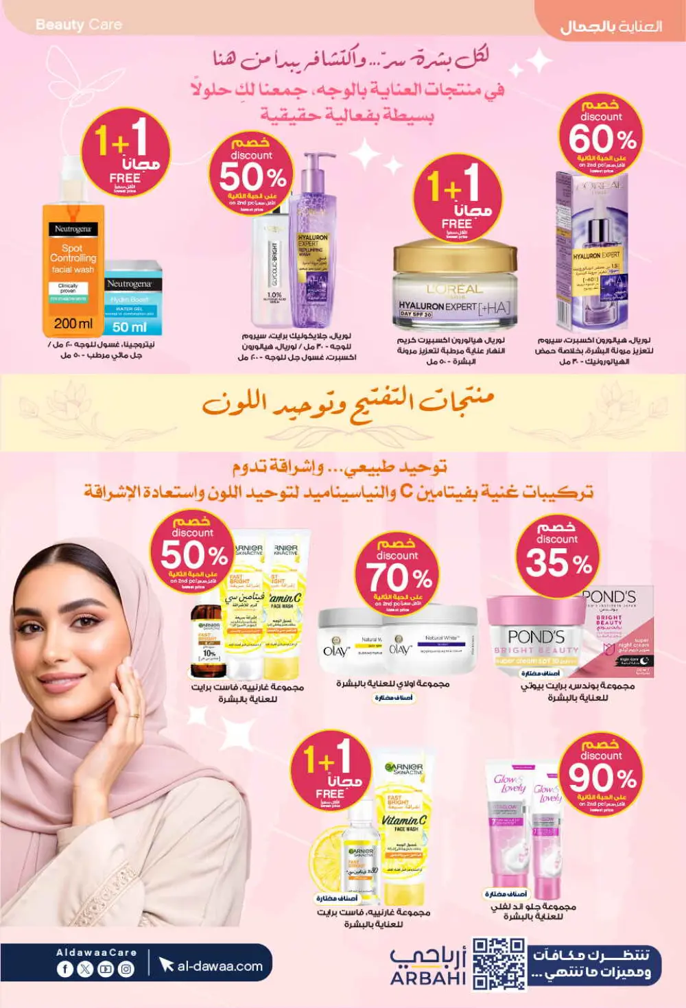 تطلق صيدليات الدواء عروضاً استثنائية على جميع منتجات العناية بالبشرة والجمال، مع خصومات تصل إلى 80% وعروض “اشتر 1 واحصل على 1 مجاناً” على أشهر الماركات العالمية، لتكون وجهتك الأولى للتوفير في عالم الجمال.