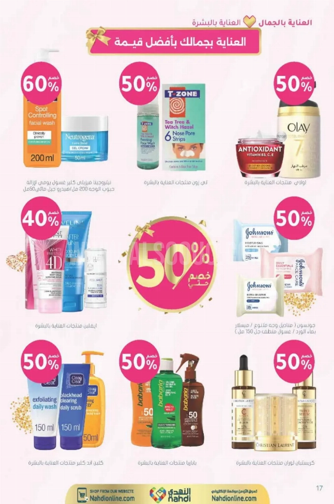 عروض صيدليات النهدي الأسبوعية 3 فبراير 2026 الموافق 15 شعبان 1447 عروض 40 سنة من الحب . الجودة تصنع فرقاً والعروض تصنع قرارك! اختر الذكاء اليوم وابتسم للصفقة غداً. عروض صيدليات النهدي ليوم الثلاثاء : تجدون ضمن منتجات الأسبوع : سجينال مكافح التسوس ٥٠ مل ١٥ % . ريكسونا سبراي ١٥٠ مل . فريدا معطر جو ٤٦٠ مل . دوف رول اون ٥٠ مل . كلوز اب ١٠٠ مل و كلوزاب ٢٥ مل هدية . وان كريم إزالة شعر ١٤٠ مل . ريد اكوا اكتيف احمر زاحف ٣٠٠ مل ٣٠ % زيادة . وإليكم الصور الآتية على موقع عروض.