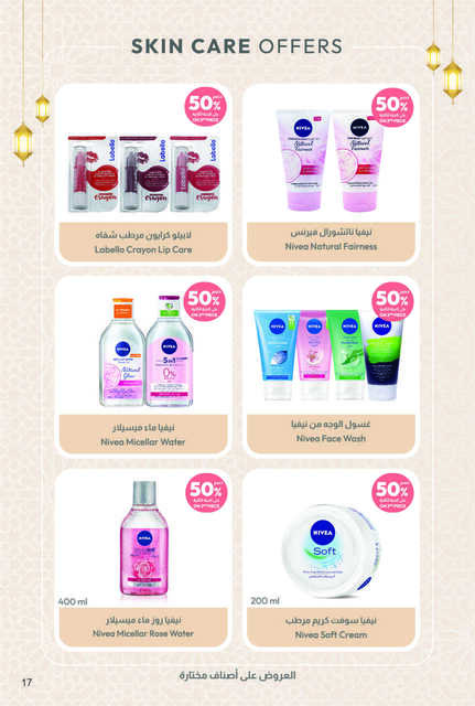 لدينا كذلك لوشن نيفيا مرطب بصبار الالوفيرا للبشرة العادية والجافة، 2×250 مل. وكما كذلك كريم ترطيب الوجه انستابرايت كريم الاشراقة الفورية هالة لؤلؤية بوزن 20 جرام للحصول على بشرة مضيئة ومشرقة من بوندز. وهناك كذلك كريم النهار و برايمر من اولاي دابل اكشن بسعة 50 مل. وكما كذلك مناديل مبللة لازالة المكياج من نيوتروجينا، تنظيف مائي معزز، عبوة من 25 منديل مبلل. وهناك كذلك سويس ايمج كريم ليلي ابسولوت ريبير من اسينشال كير، 50 مل | غير دهني وخفيف الوزن ومغذي وينعم ويمتص بسرعة | يجدد الرطوبة والمغذيات الاساسية | تم اختباره من قبل اطباء الجلد.