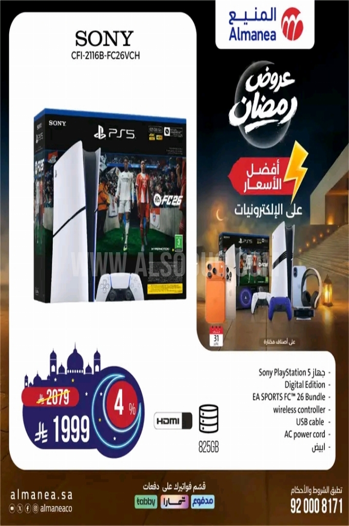 عروض المنيع الأسبوعية 22 يناير 2026 الموافق 3 شعبان 1447 عروض رمضان . الجودة تصنع فرقاً والعروض تصنع قرارك! اختر الذكاء اليوم وابتسم للصفقة غداً. عروض المنيع ليوم الخميس : تجدون ضمن منتجات الأسبوع : مسدس التدليك من بيورير . جهاز بخار تربستر . موبايل ذكي من هواوي نوفا واي ٩٠ بشاشة إل سي دي فول اتش دي بلاس و بطارية عملاقة ب ٥٠٠٠ مل أمبير . ماكينة إزالة الشعر من براون . مملس و مجفف بيبي ليس . بيانو ياماها و محول . وإليكم الصور الآتية على موقع عروض.