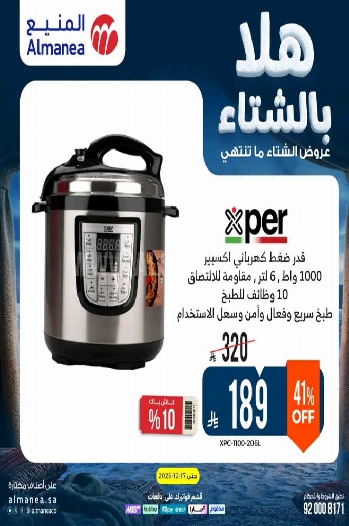 عروض المنيع اليوم من 17 ديسمبر 2025 الموافق 26 جمادى الاخر 1447 عروض هلا بالشتاء . الجودة تصنع فرقاً والعروض تصنع قرارك! اختر الذكاء اليوم وابتسم للصفقة غداً.