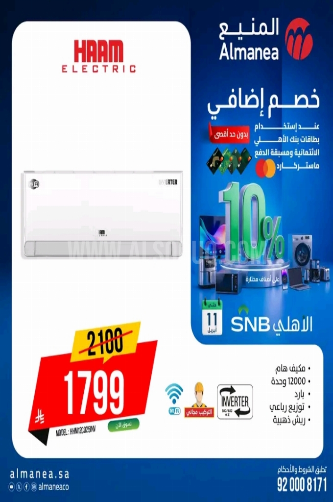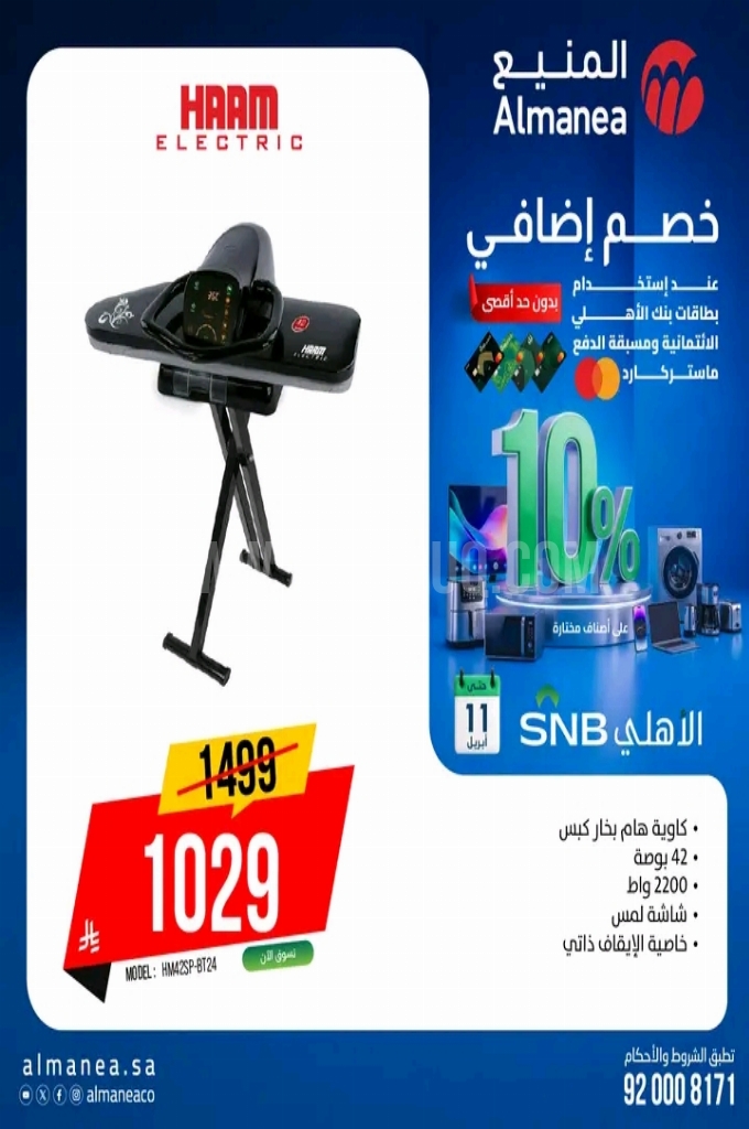 عروض المنيع اليوم 1 أبريل 2026 الموافق 13 شوال 1447 عروض خصم اضافي بدون حد اقصى . الجودة تصنع فرقاً والعروض تصنع قرارك! اختر الذكاء اليوم وابتسم للصفقة غداً.