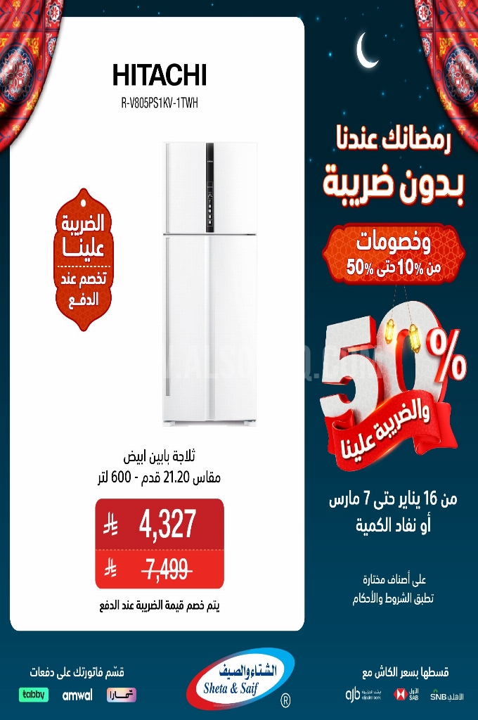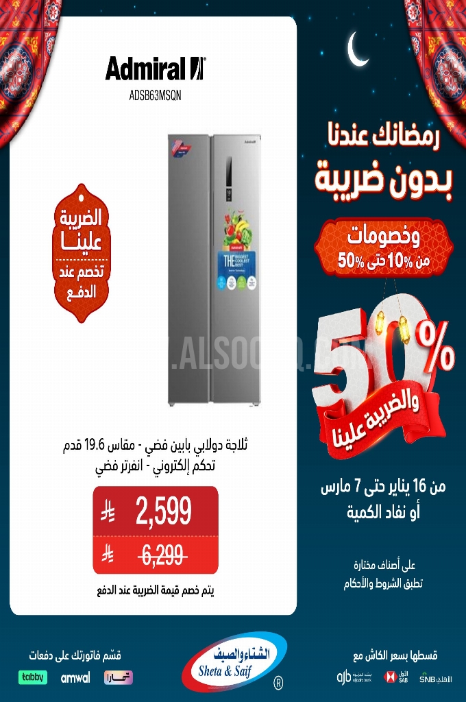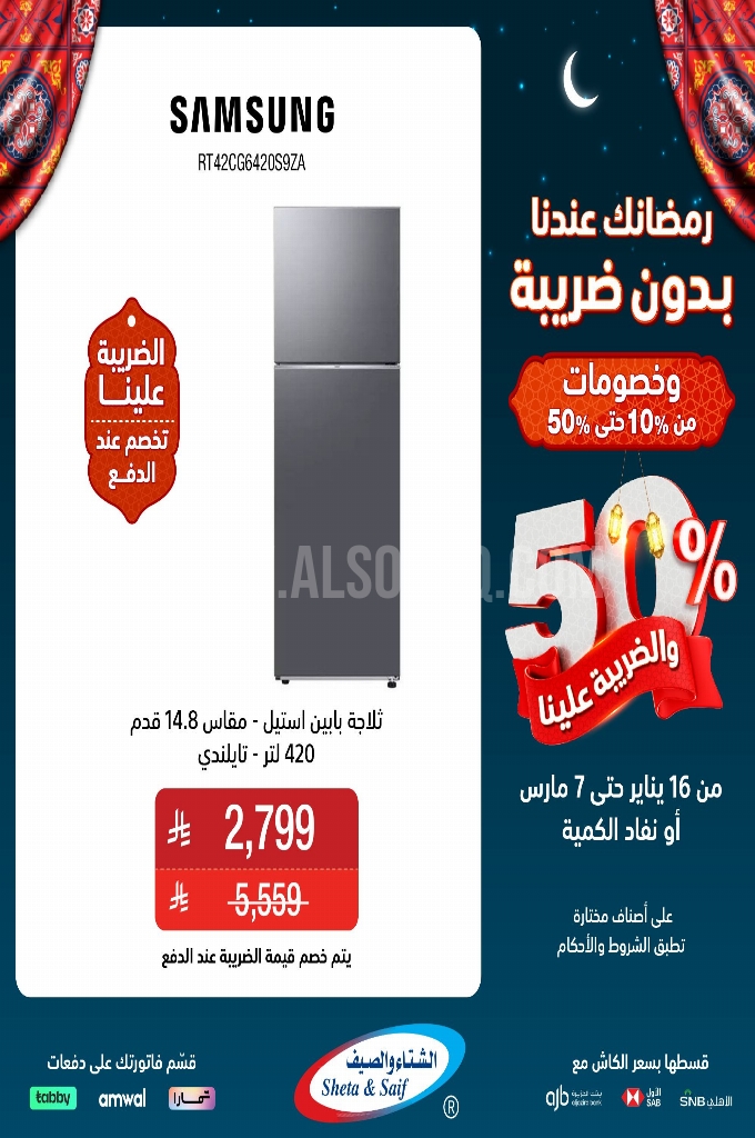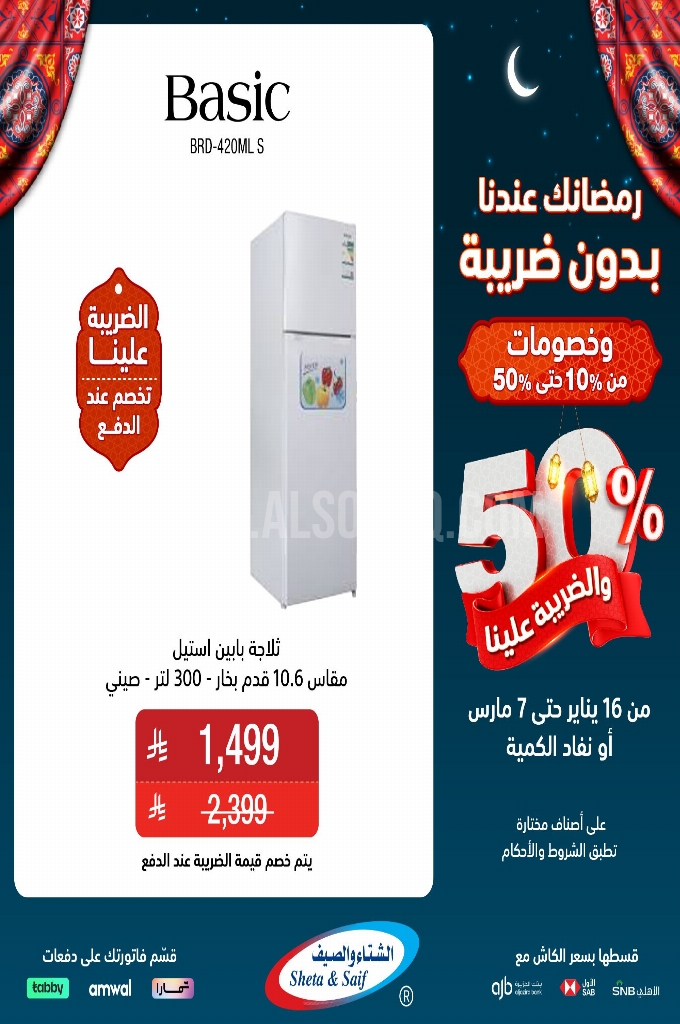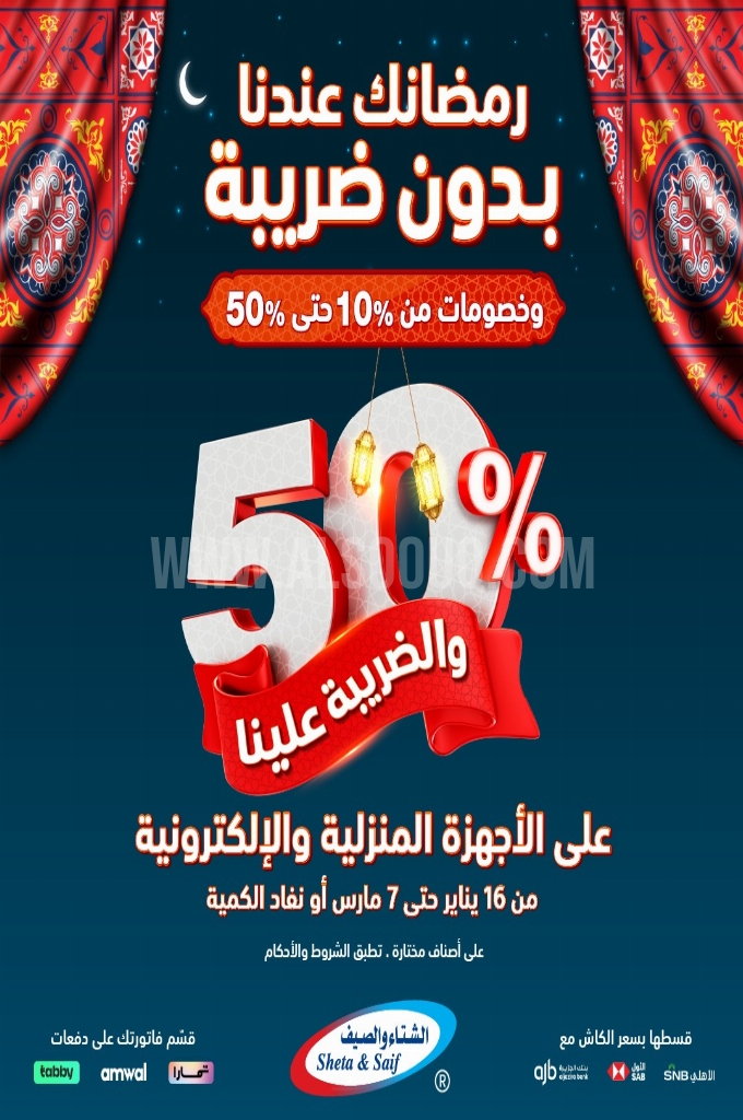 عروض الشتاء و الصيف اليوم 19 يناير 2026 الموافق 30 رجب 1447 عروض رمضانك عندنا بدون ضريبة . الجودة تصنع فرقاً والعروض تصنع قرارك! اختر الذكاء اليوم وابتسم للصفقة غداً.