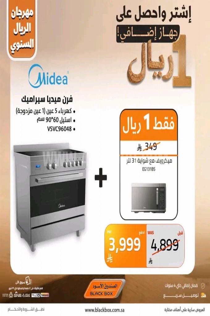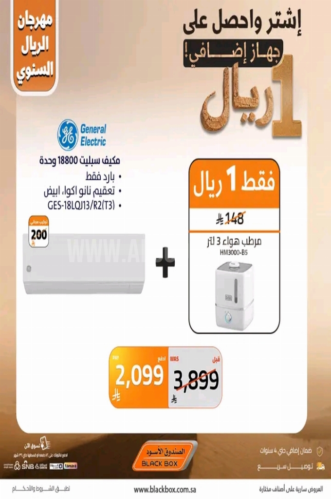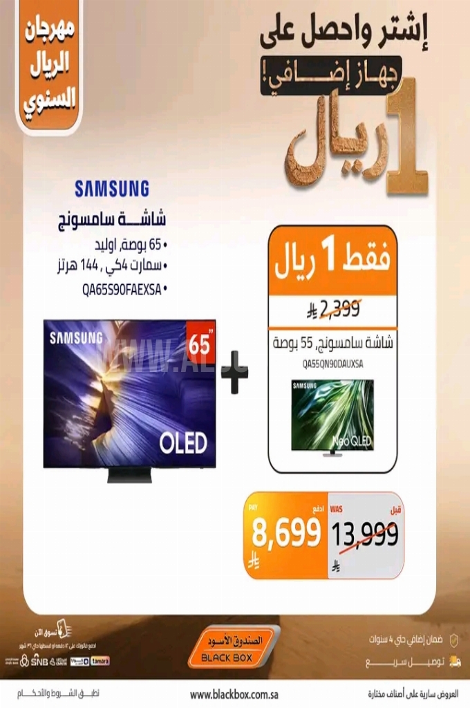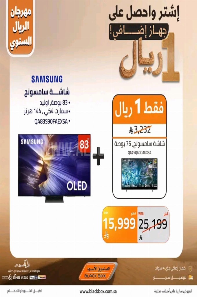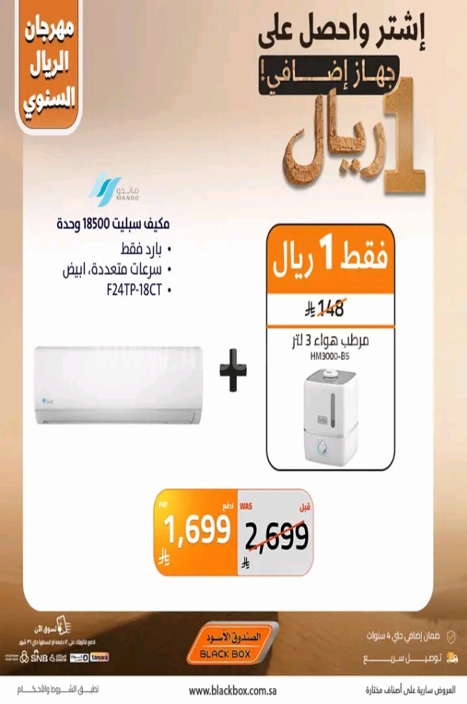 عروض الصندوق الاسود اليوم 17 أبريل 2026 الموافق 29 شوال 1447 عروض اشتر و احصل على جهاز اضافي 1 ريال . الجودة تصنع فرقاً والعروض تصنع قرارك! اختر الذكاء اليوم وابتسم للصفقة غداً.