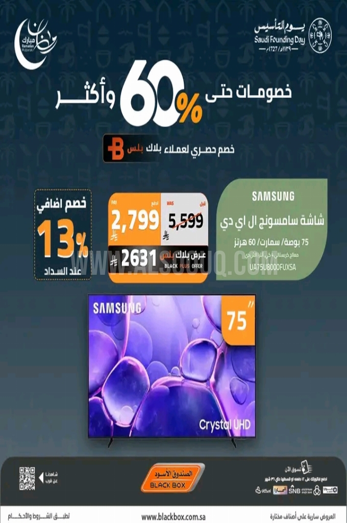 عروض الصندوق الاسود اليوم 24 فبراير 2026 الموافق 7 رمضان 1447 عروض رمضان . الجودة تصنع فرقاً والعروض تصنع قرارك! اختر الذكاء اليوم وابتسم للصفقة غداً.