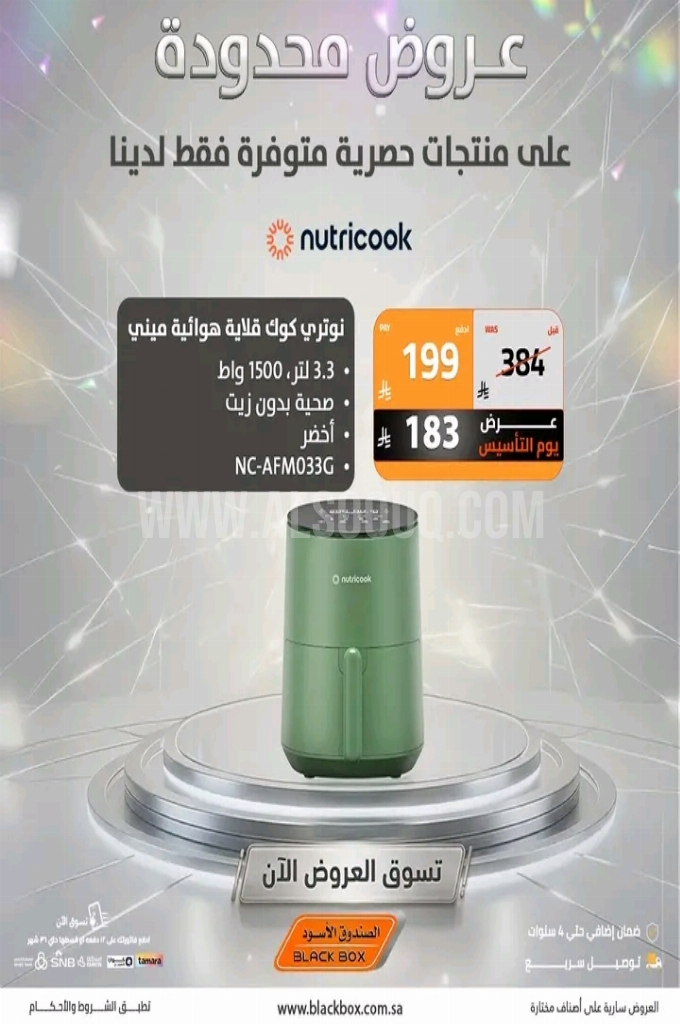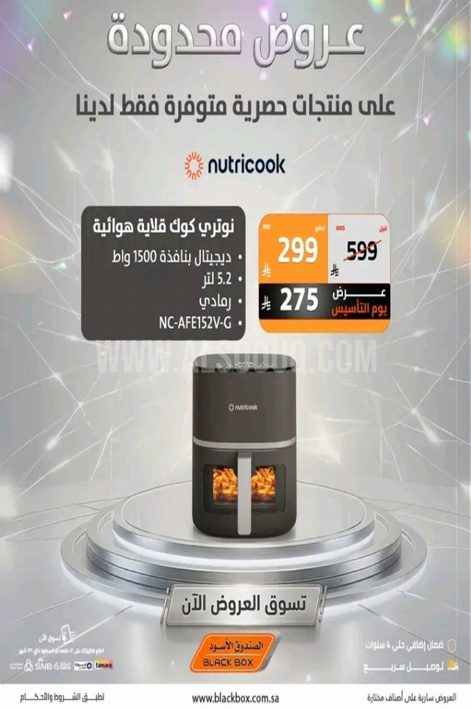 عروض الصندوق الاسود اليوم 7 أبريل 2026 الموافق 19 شوال 1447 عروض محدودة . الجودة تصنع فرقاً والعروض تصنع قرارك! اختر الذكاء اليوم وابتسم للصفقة غداً.