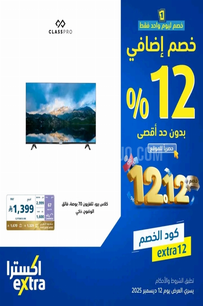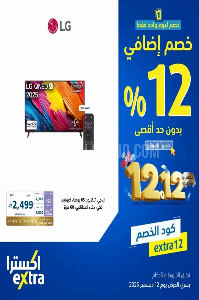 عروض اكسترا السعودية اليوم 12 ديسمبر 2025 الموافق 21 جمادى الاخر 1447 عروض خصم اضافي 12% . الجودة تصنع فرقاً والعروض تصنع قرارك! اختر الذكاء اليوم وابتسم للصفقة غداً.