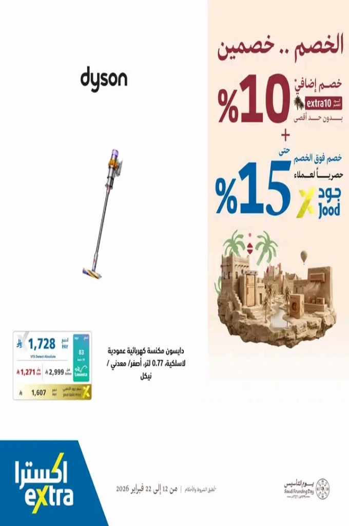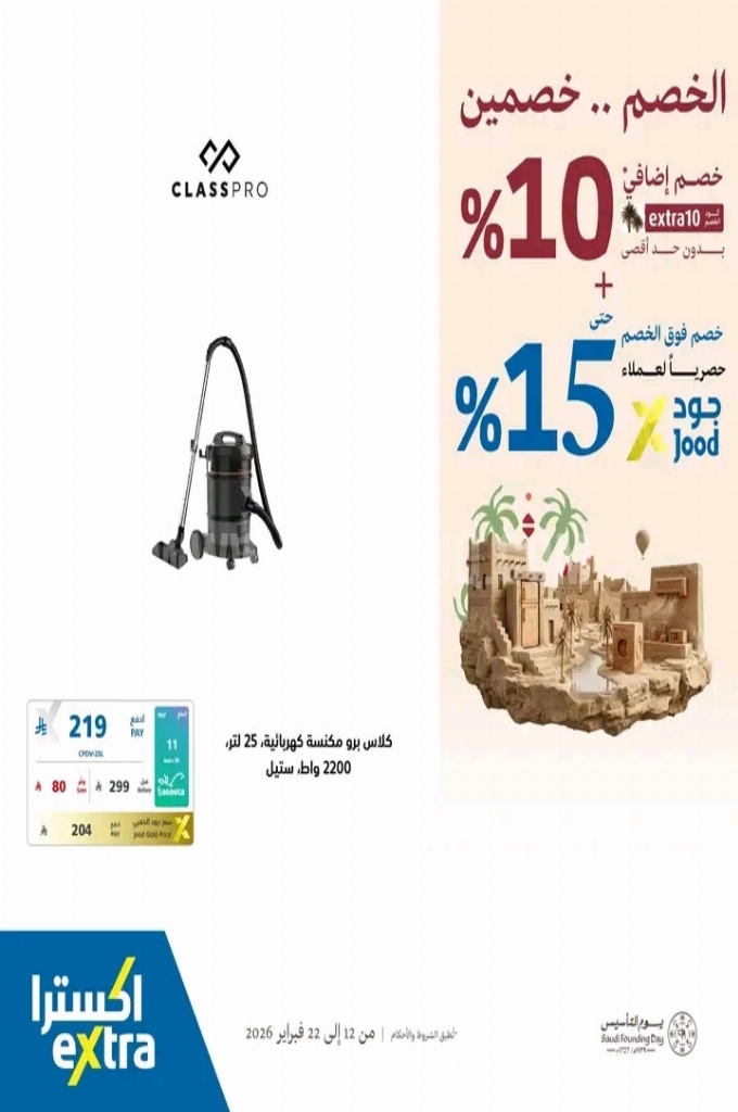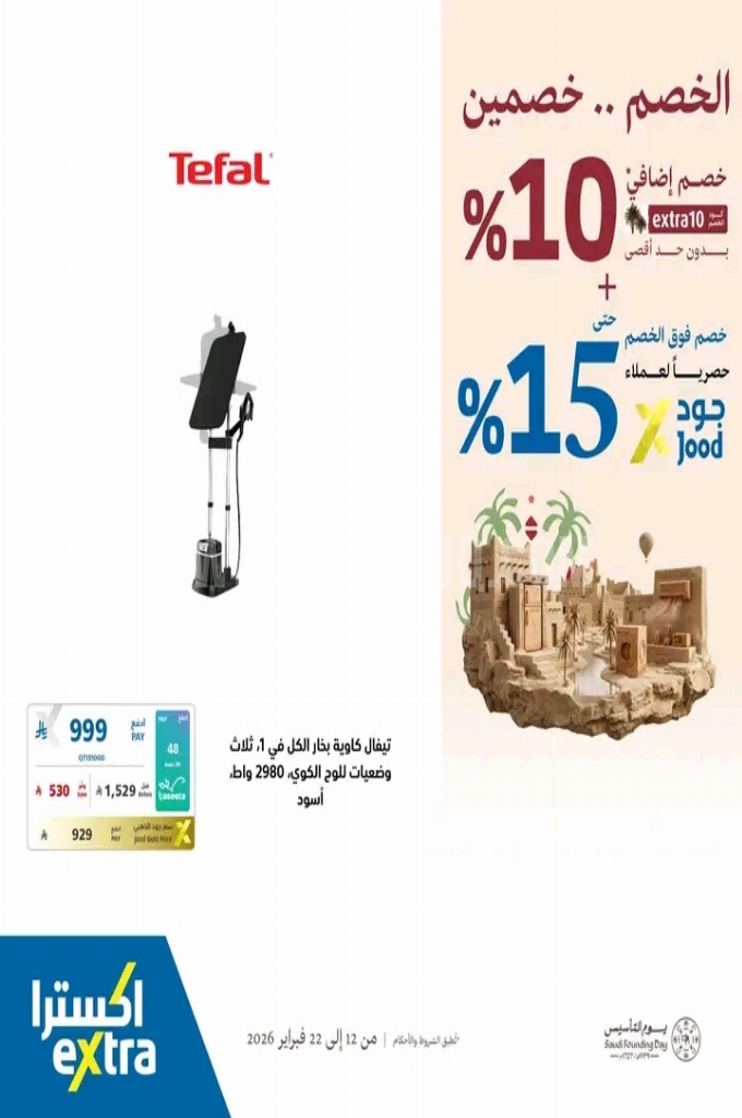 عروض اكسترا السعودية اليوم 14 فبراير 2026 الموافق 26 شعبان 1447 عروض يوم التأسيس . الجودة تصنع فرقاً والعروض تصنع قرارك! اختر الذكاء اليوم وابتسم للصفقة غداً.