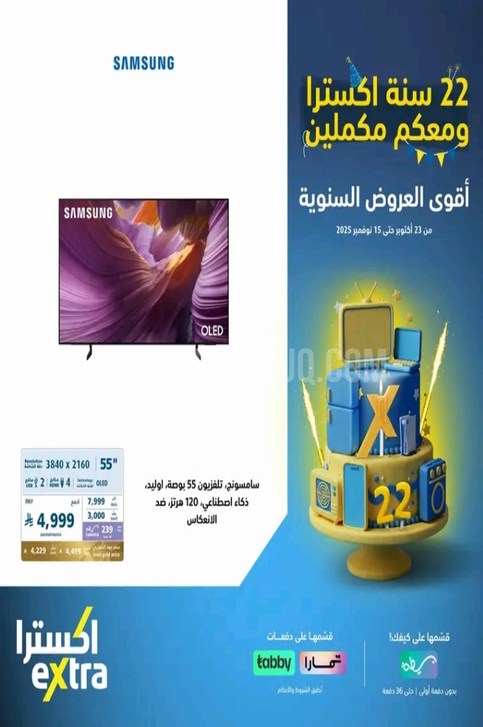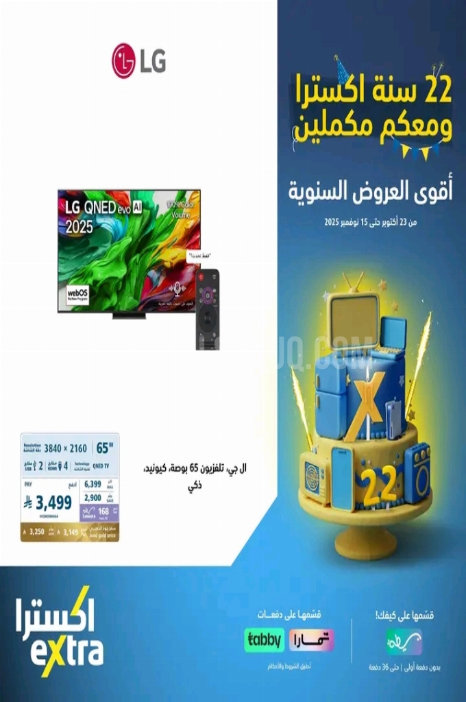 عروض معرض اكسترا اليوم 14 نوفمبر 2025 الموافق 23 جمادى الاولى 1447 عروض 22 سنة اكسترا و معكم مكملين . استعد لخصومات مذهلة وصفقات لا تقبل المنافسة تسوق منتجاتك المفضلة بأسعار لا تقاوم.