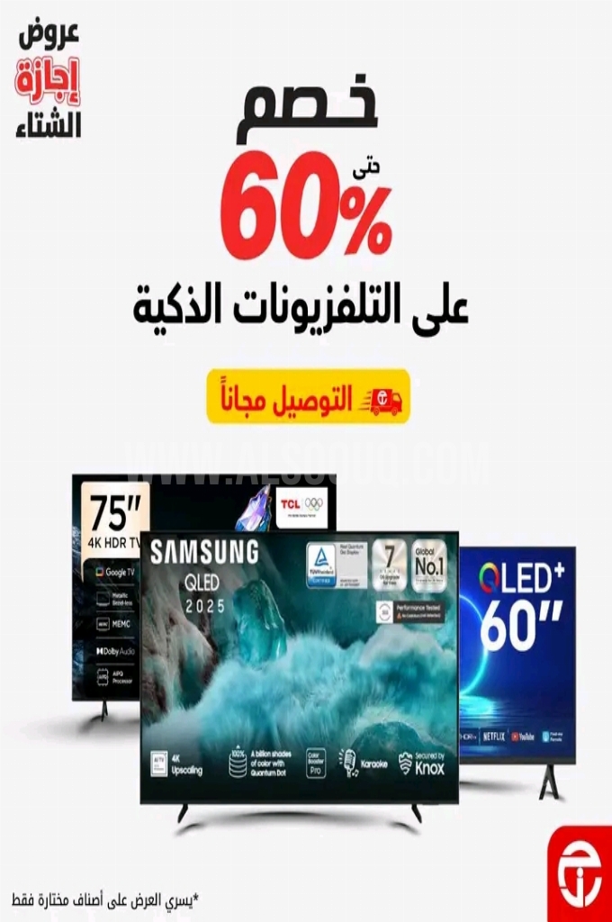 عروض جرير اليوم 14 يناير 2026 الموافق 25 رجب 1447 عروض خصم حتى 60% على التلفزيونات الذكية