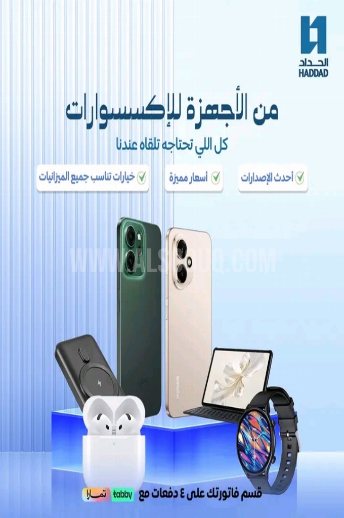 عروض الحداد اليوم 2 يناير 2026 الموافق 13 رجب 1447 عروض من الاجهزة للاكسسوارات . الجودة تصنع فرقاً والعروض تصنع قرارك! اختر الذكاء اليوم وابتسم للصفقة غداً.
