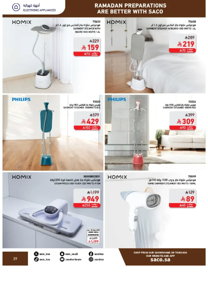 للحفاظ على مظهر أنيق في صلاة التراويح والجمعات العائلية، طرحت ساكو خصومات على أجهزة الكي من Philips و Homix: