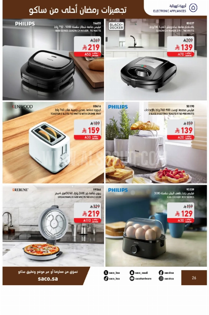 عروض ساكو اليوم 13 يناير 2026 الموافق 24 رجب 1447 عروض تجهيزات رمضان احلى مع ساكو . الجودة تصنع فرقاً والعروض تصنع قرارك! اختر الذكاء اليوم وابتسم للصفقة غداً. عروض ساكو ليوم الثلاثاء : تجدون ضمن منتجات الأسبوع : بارقيت طقم مقلاة 3ق المنيوم غير لاصق . بارفيه مقلاة مزدوجة بخام بيج 36 سم . بارفيت كسرلة غير لاصقةمع غطاء 20 سم . وام صينية شوس وام كك ورف ورق 36 . لودج قالب خبز حديد زهر 21 × 11 سم . بي امي طقم ادوات بحامل 5 قطع . وإليكم الصور الآتية على موقع عروض.