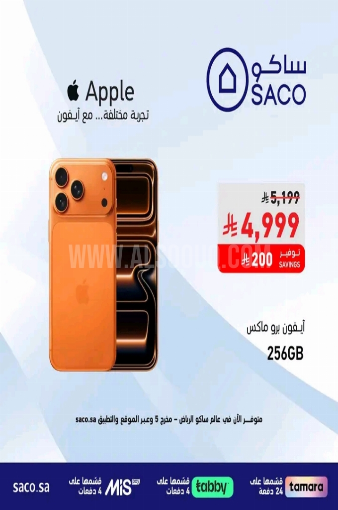 عروض ساكو اليوم 9 مارس 2026 الموافق 20 رمضان 1447 عروض على احدث اجهزة الايفون