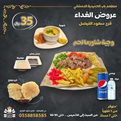 عروض مطعم باب الحمدية الدمشقي اليوم 20 أكتوبر 2023 مـ الموافق 5 ربيع الآخر 1445 هـ عروض الغداء عروض مطعم باب الحمدية الدمشقي اليوم 20 أكتوبر 2023 مـ الموافق 5 ربيع الآخر 1445 هـ عروض الغداء . تابعوا تخفيضات المطعم اليوم الجمعة 20-10-2023 الموافق 5-4-1445 عروض المطاعم السعودية : مطعم باب الحمدية الدمشقي يعتبر واحد من أهم المطاعم في المملكة العربية السعودية . الذي يتخصص يتقديم الأطباق للمأكولات سورية ومشويات وصفايح شامية وشاورما الأصيلة بطريقة حديثة، حيث يمكنكم الآن الاستمتاع بأشهى الأطباق وتجربة خدمة ممتازة . كما يتميز المطعم بديكور عصري وجو مريح ومناسب للعوائل والأصدقاء . العنوان : جدة - حي الفيصلية - شارع سعود الفيصل / للحجز : 0558858585 / نحن بخدمتكم يومياً ( من 1 ظهراً حتى 2 صباحاً ) / يوجد صالة خاصة للعوائل استمتع بعروض التوفير : والتي تحتوي على عرض غداك عنا بس بــ 35 ريال خلال فترة الغداء من الساعة 1 ظهراً حتى 7 مساءً من السبت إلى للخميس / (عروض الغداء في فرع سعود الفيصل والذي يتضمن مشويات ، شاورما دجاج، شاورما لحم ، صفايح شامية، طبق يومي ومأكولات سورية (العروض متوفرة فقط في فرع سعود الفيصل )متوفرة حتى 31\10 ، بالاضافة الى عروض مطعم باب الحمدية الدمشقي التي ذكرناها تابعوا عروض المطاعم بينما واليكم الصور الاتية على موقع عروض