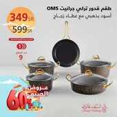 طقم قدور تركي جرنيت OMSاسود بذهبي مع غطاءزجاج ——-سارعي بالاستفادة منها واحصلي على طقم قدور OMS الرائع من الجرانيت بخصم كبير