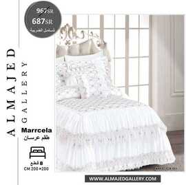 الضرورية ومنها طقم كامل للسرير خاص بالعرسان يشمل 8 قطع عالية