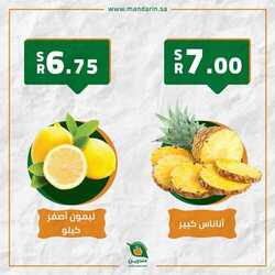 تجدون كذلك ضمن عروض مندرين للموادالغذائية أناناس كبير بسعر 7 ريال فقط. .. ليمون أصفر 1كغ بسعر 6.75 ريال فقط . ولدينا كذلك رمان يمني بالكيلو 8 ريال فقط. رمان يمني كرتون بسعر 115 ريال فقط . وهناك كذلك خس مدور الشربتلي بسعر 8 ريال فقط. فلفل رومي ملون بسعر 11.99 ريال فقط . وأيضا كذلك أفندي مغربي كبير بسعر 59 ريال فقط… ملفوف أحمر بسعر 4 ريال فقط . وهناك كذلك برتقال ابوصره اسباني 1كغ بسعر 4.94 ريال فقط… برتقال ابوصره اسباني صندوق بسعر 38 ريال فقط .