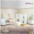 اللّازمة، بالإضافة إلى طاولتي سرير جانبيّتان، طاولة تزيين ومرآة. جميعها مصنوعة من الخشب الهندسي المتين بتشطيب ميلامين