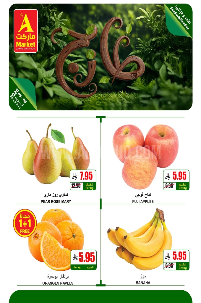 عروض أي ماركت اليوم 5 أبريل 2026 الموافق 17 شوال 1447 كيلو+ كيلو مجاناً ليومين فقط. اكتشف أقوى عروض الطازج اليوم مع خصومات حصرية على الخضروات، والفواكه واللحوم الطازجة في جميع الفروع.