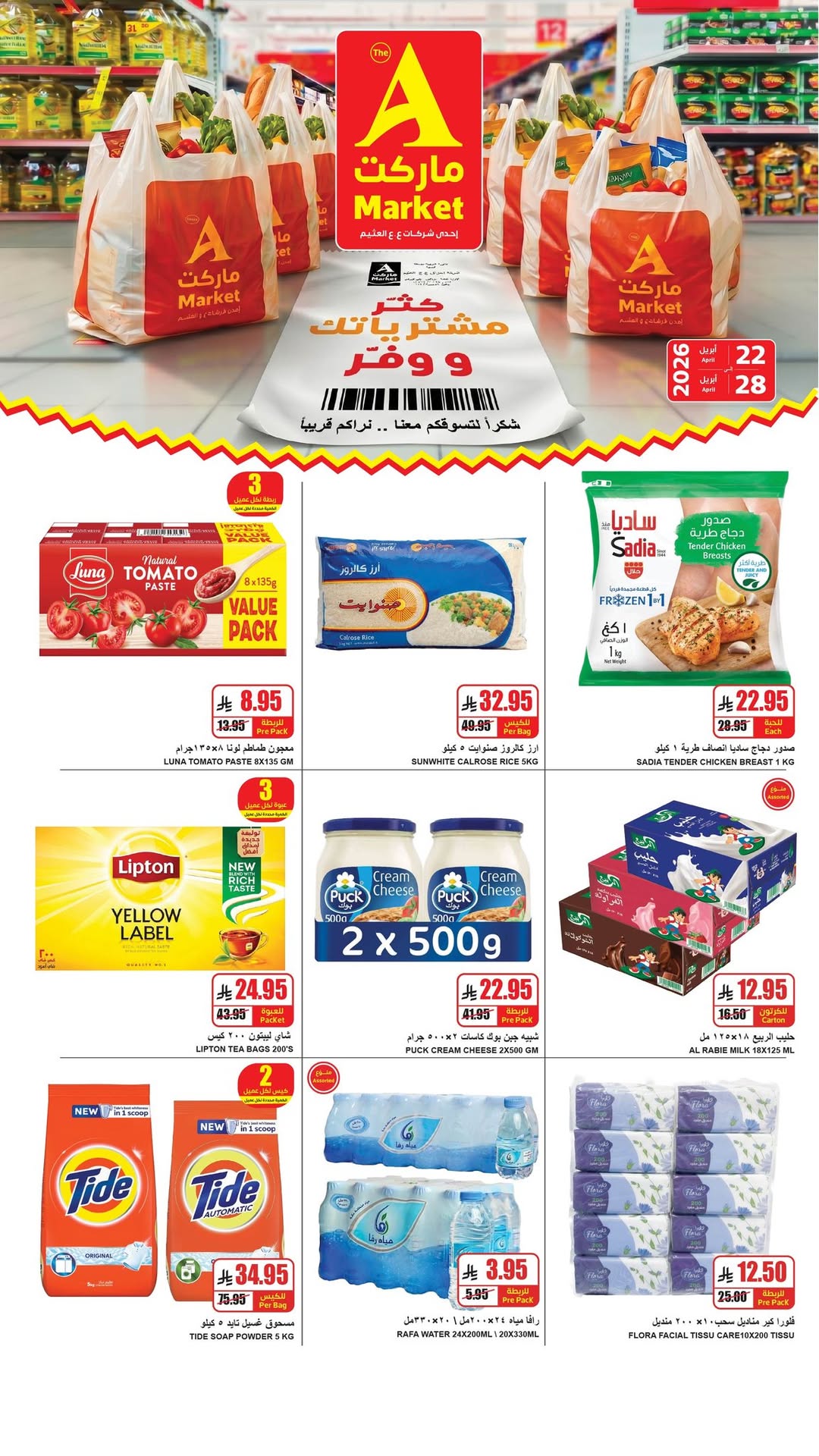 عروض اي ماركت اليوم 23 أبريل 2026 الموافق 6 ذو القعدة 1447 كثّر مقاضيك… ووفّر أكثر. تسوقوا الآن مجموعة من المنتجات المميزة المختارة بعناية بأسعار وقيمة تستحق التجربة وتمنحك أكثر مما تتوقع.