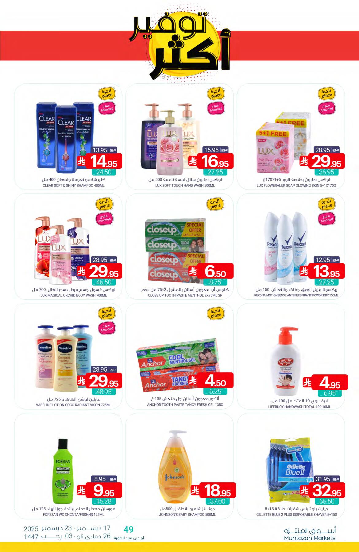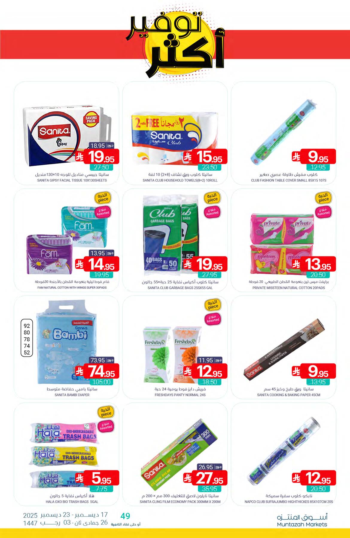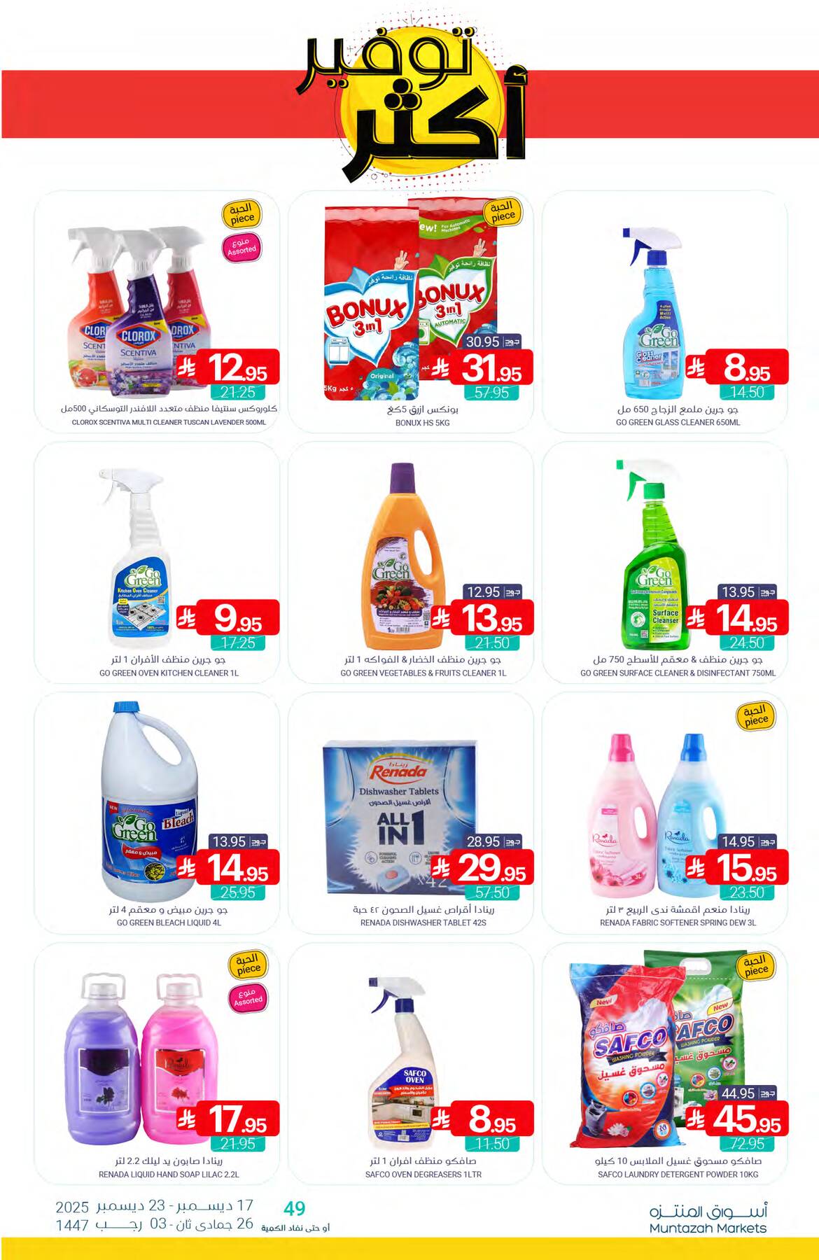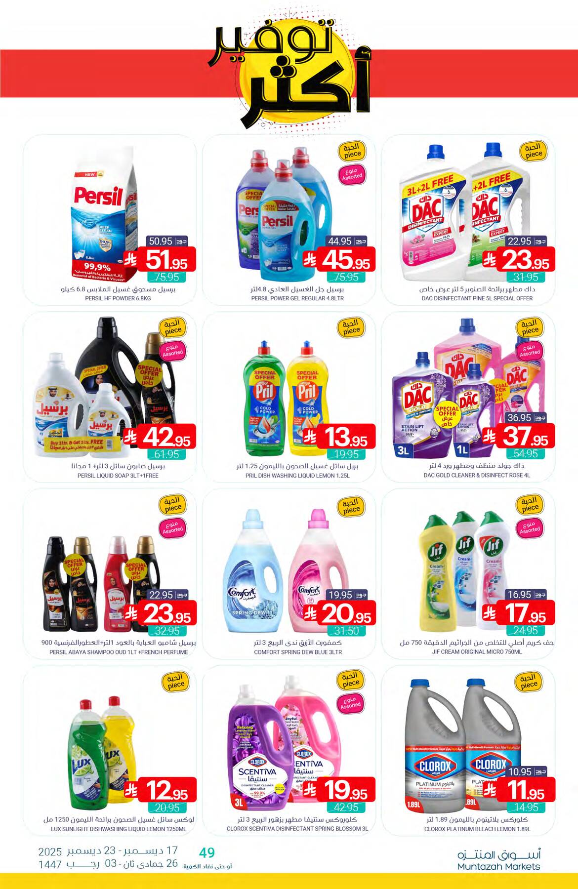 تقدم أسواق المنتزه (Muntazah Markets) حملة ترويجية جديدة تحت شعار “توفير أكثر”، مقدمةً مجموعة من العروض المتنوعة التي تشمل السلع الغذائية الأساسية، الخضروات، والفاكهة، بالإضافة إلى منتجات العناية المنزلية. العروض سارية ابتداءً من 17 ديسمبر وحتى 23 ديسمبر 2025.