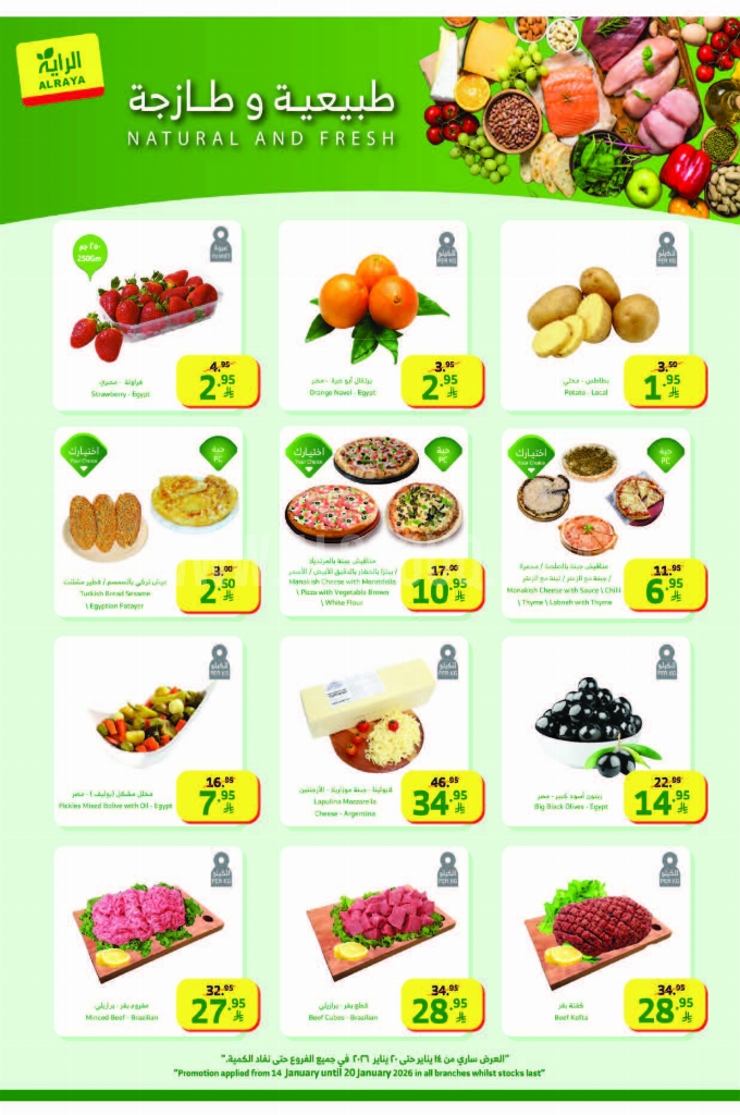 عروض الراية الأسبوعية 14 يناير 2026 الموافق 25 رجب 1447 رمضان كريم. انطلقوا في تجربة توفير ذكية على السلع الأساسية والمنتجات اليومية، مع عروض مدروسة وأسعار تنافسية تمنحكم قيمة حقيقية. عروض رمضان الكبرى بين يديك! اغتنم أقوى الحسومات على المستلزمات الأساسية واضمن توفيراً استثنائياً لكل احتياجات منزلك. لا تنتظر طويلاً، تسوق بذكاء منذ اليوم الأول واستفد من تخفيضاتنا الهائلة على كافة المنتجات التي تعتمد عليها يومياً بأسعار حطمّت التوقعات. عروض الراية الرمضانية اليوم: بصمة جديدة لعام جديد. اكتشفوا ما اخترناه لكم ضمن منتجات اليوم المميزة منها: سن توب مشروب بالنكهات، ود مياه شرب. مفروم بقر برازيلي، فخذ خروف بربري، كتف خروف بربري، كتف عجل بالعظم باكستاني، وإليكم الصور الآتية على موقع عروض