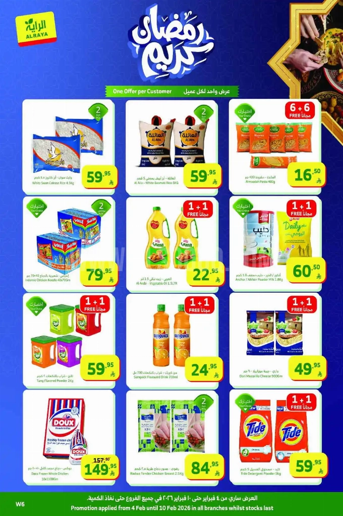 عروض الراية الأسبوعية 4 فبراير 2026 الموافق 16 شعبان 1447 رمضان كريم. توفير ذكي يلبي احتياجاتكم اليومية بأسعار مدروسة تمنحكم قيمة أعلى لكل ريال، مع توفير حقيقي يناسب جميع الميزانيات.