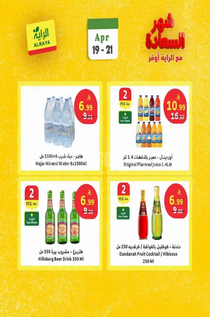 عروض الراية اليوم 19 أبريل 2026 وحتى 21 أبريل 2026 شهر السعادة مع أسواق الراية أوفر. تسوقوا الآن مجموعة من المنتجات المميزة المختارة بعناية بأسعار وقيمة تستحق التجربة وتمنحك أكثر مما تتوقع.