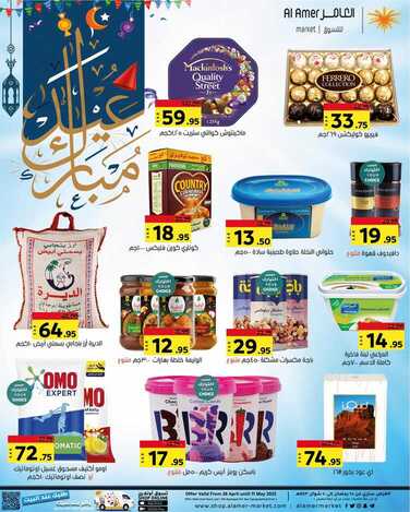 عروض العامر للتسوق الإحساء الأسبوعية 29 أبريل 2022 الموافق 28 رمضان 1443 عيدكم مبارك