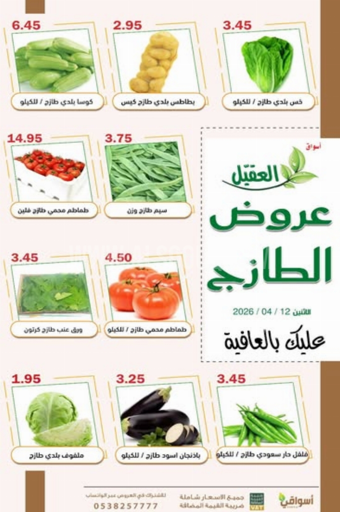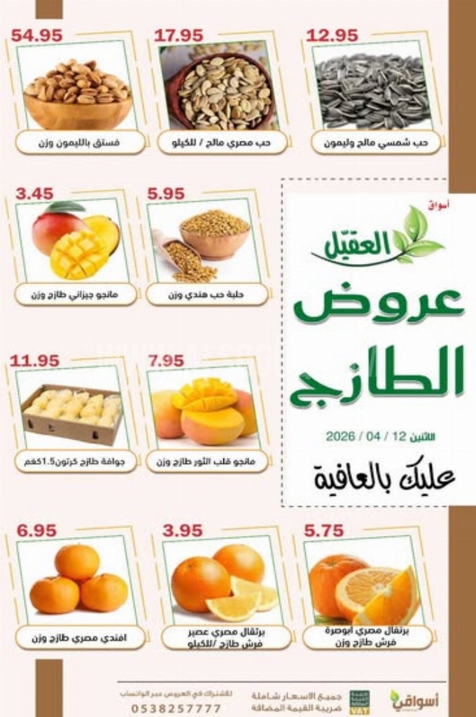 عروض أسواق العقيل اليوم 13 أبريل 2026 الموافق 26 شوال 1447 عروض الطازج