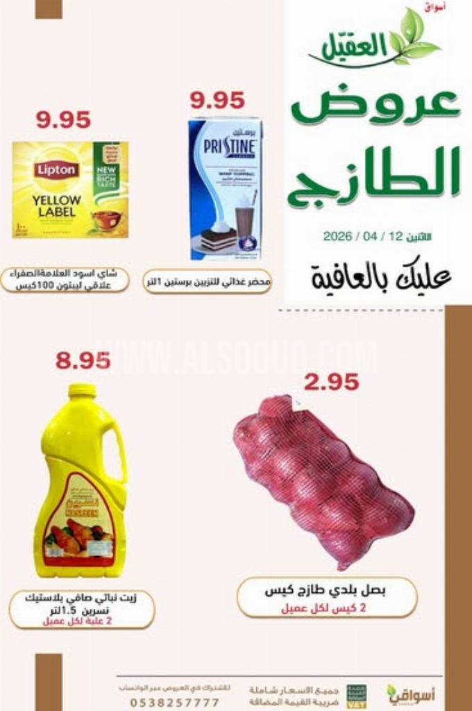 عروض أسواق العقيل اليوم 13 أبريل 2026 الموافق 26 شوال 1447 عروض الطازج . استعد لخصومات مذهلة وصفقات لا تقبل المنافسة تسوق منتجاتك المفضلة بأسعار لا تقاوم.