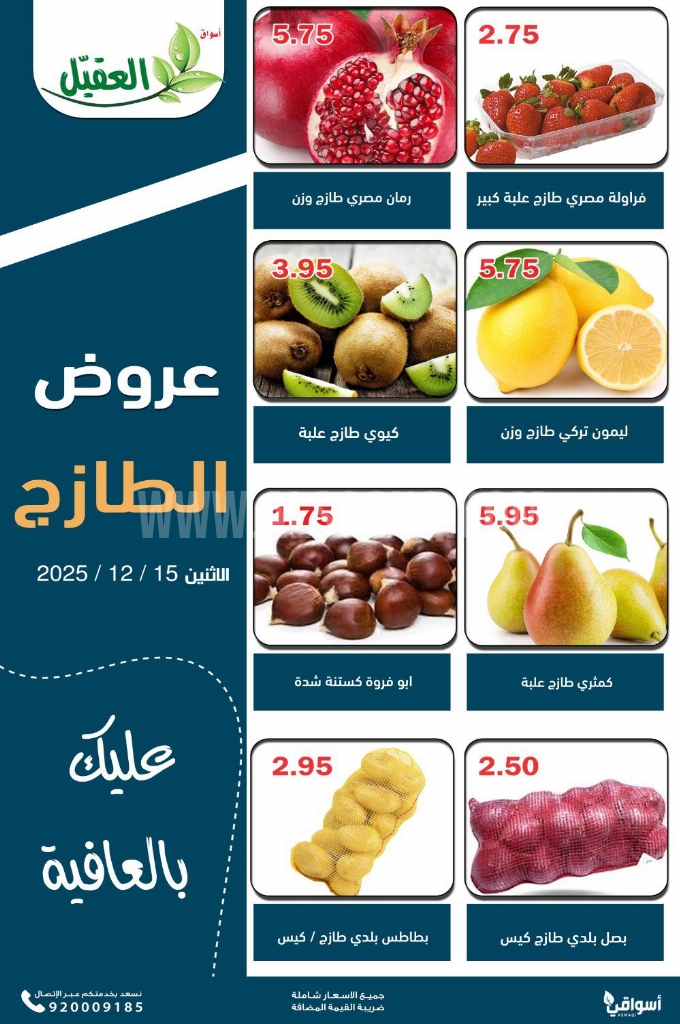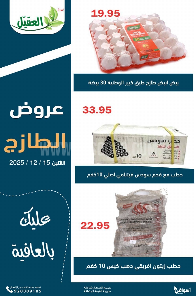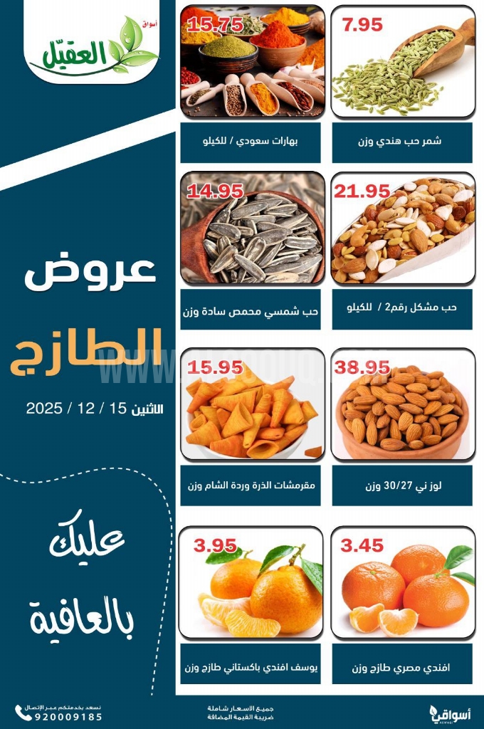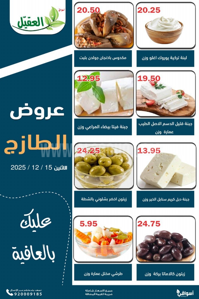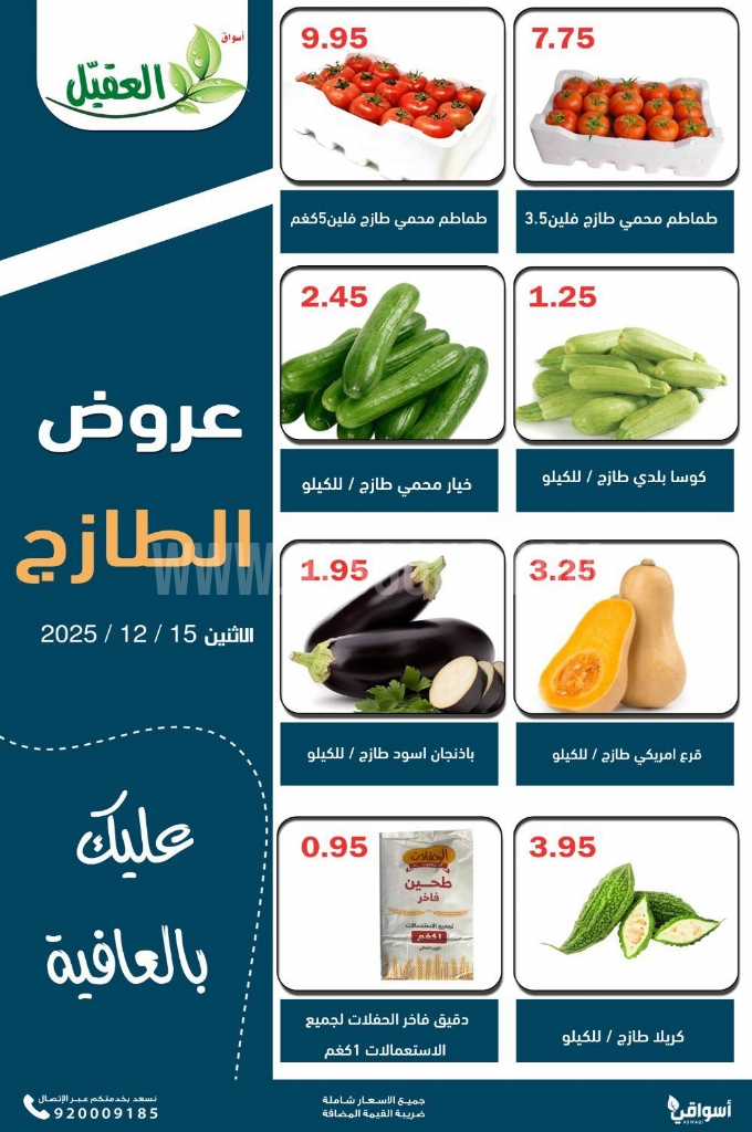 عروض أسواق العقيل اليوم 15 ديسمبر 2025 الموافق 24 جمادى الآخر 1447 عروض الطازج عليك بالعافية