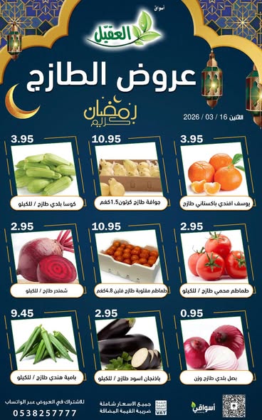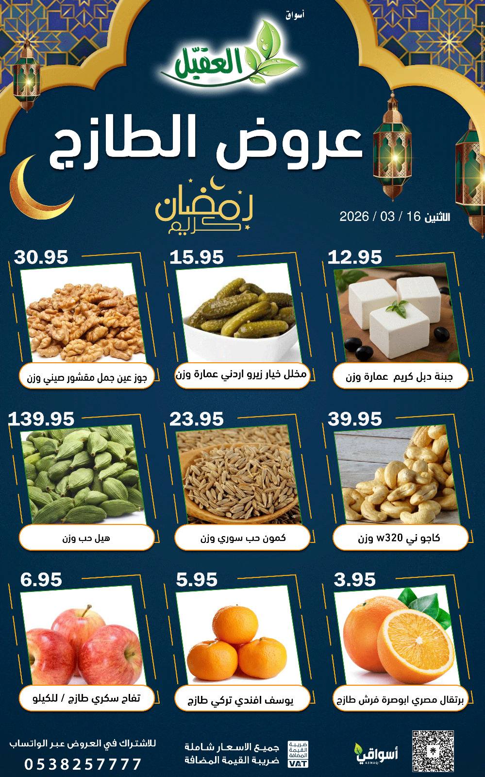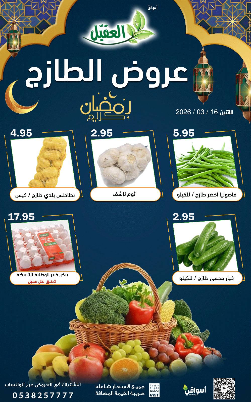 عروض أسواق العقيل اليوم 15 مارس 2026 | 27 رمضان 1447 عروض الطازج