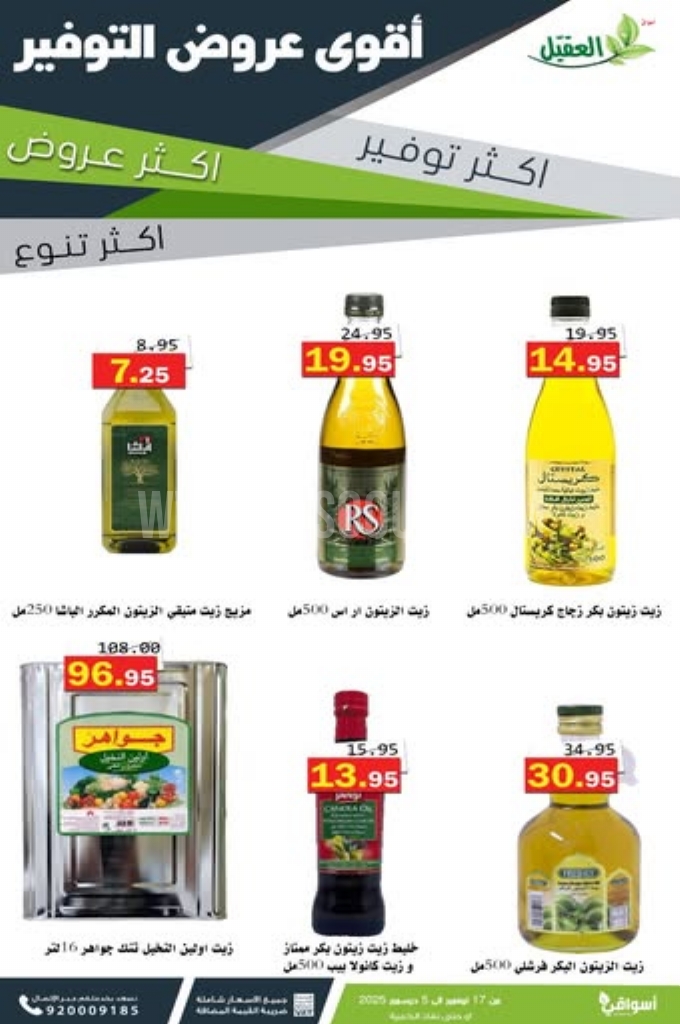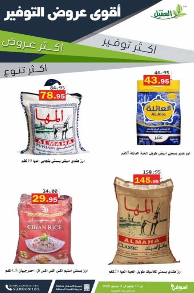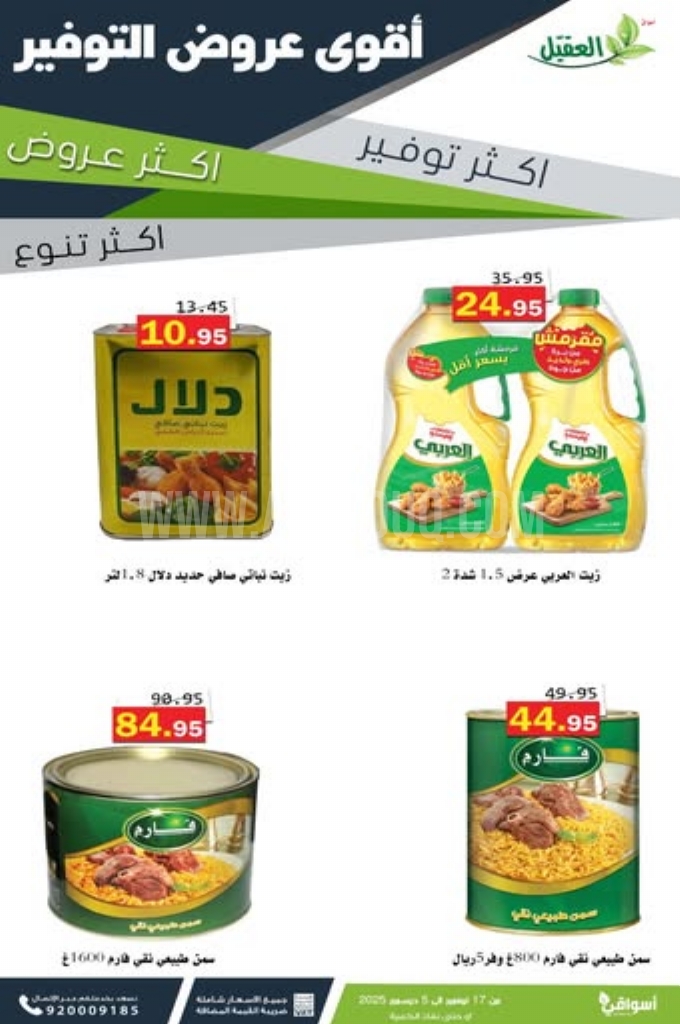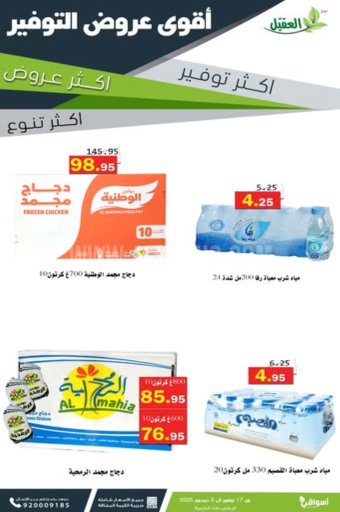 عروض أسواق العقيل اليوم 18 نوفمبر 2025 الموافق 26 جمادى الاولى 1447 عروض مذهلة . استعد لخصومات مذهلة وصفقات لا تقبل المنافسة تسوق منتجاتك المفضلة بأسعار لا تقاوم.