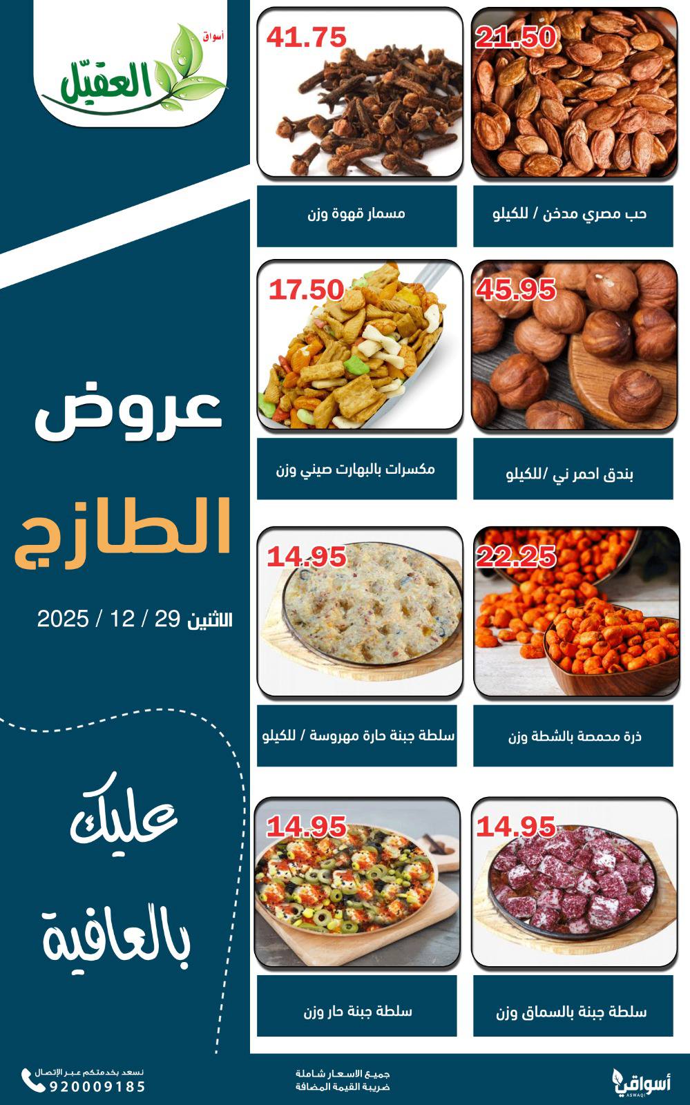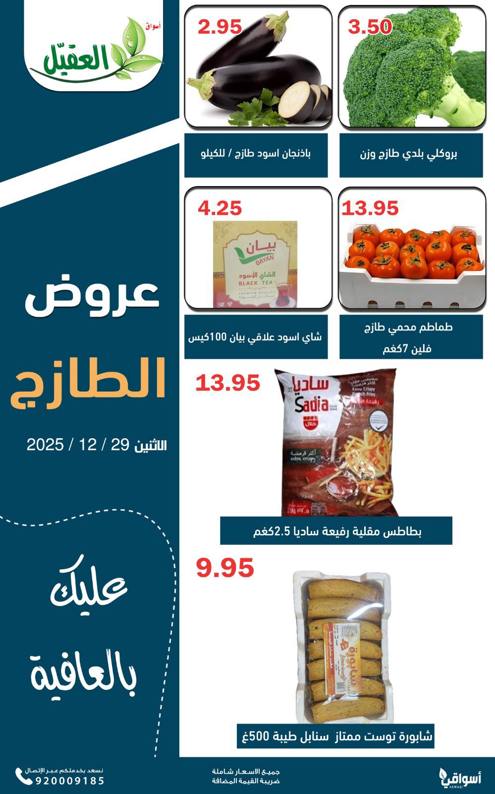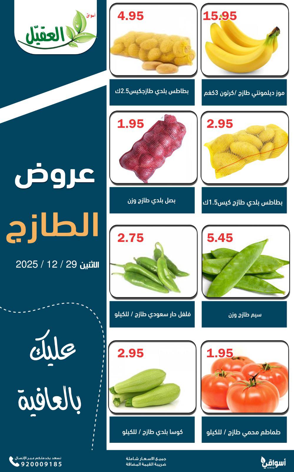 عروض أسواق العقيل اليوم 29 ديسمبر 2025 الموافق 9 رجب 1447 سوق طازج