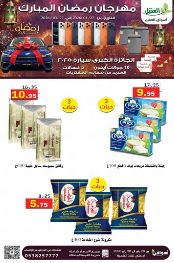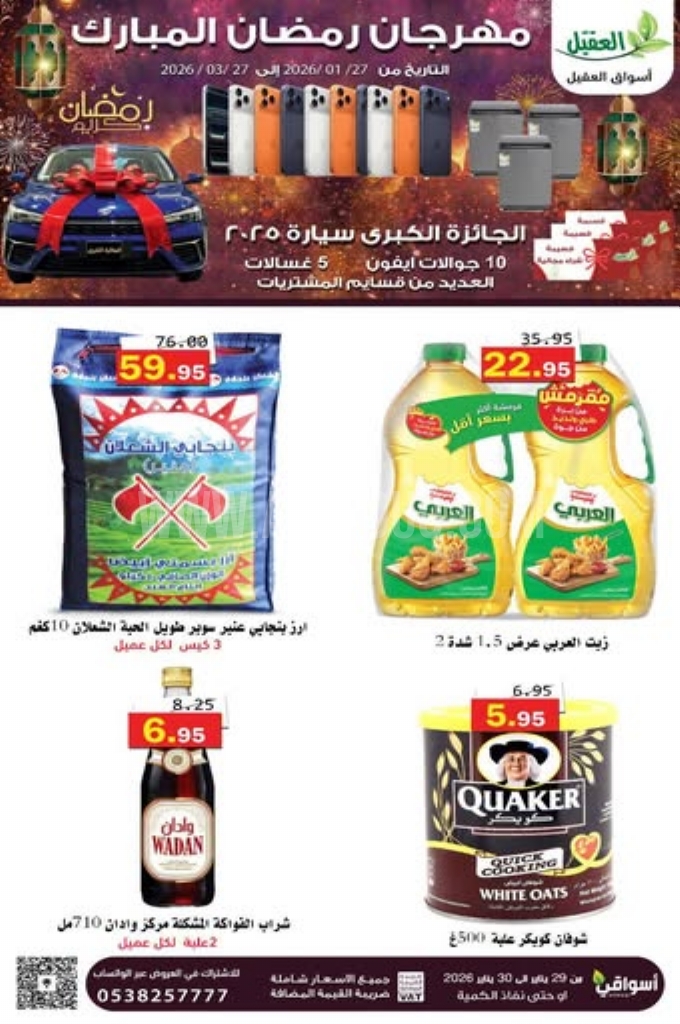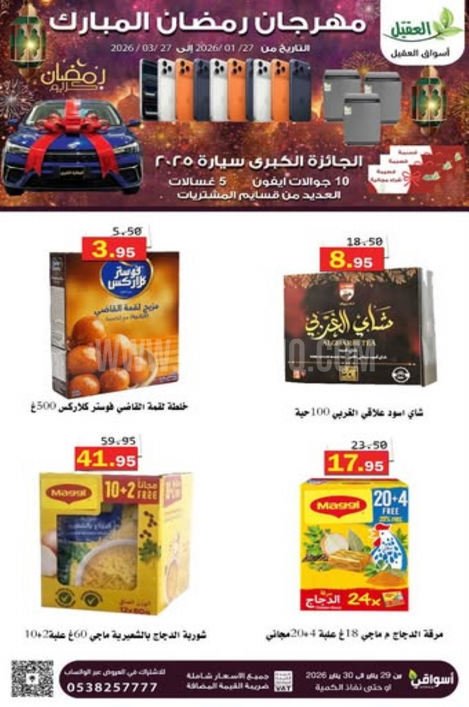 عروض أسواق العقيل اليوم 29 يناير 2026 الموافق 10 شعبان 1447 عروض رمضان كريم