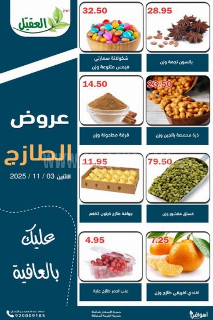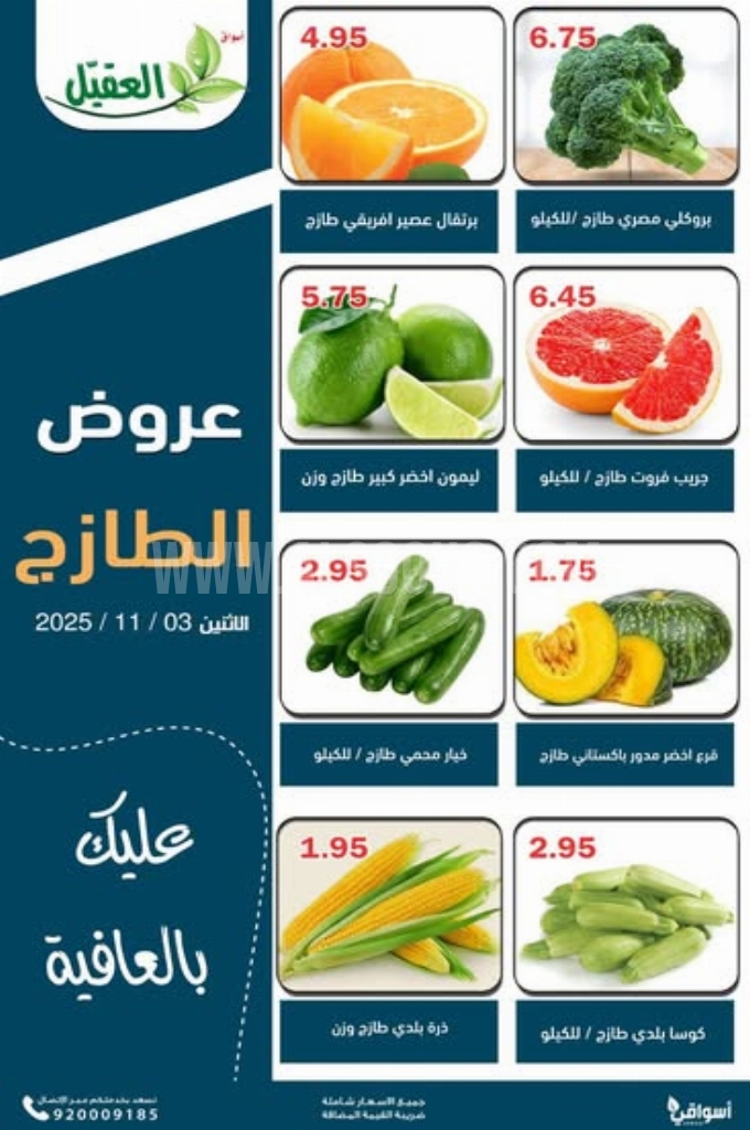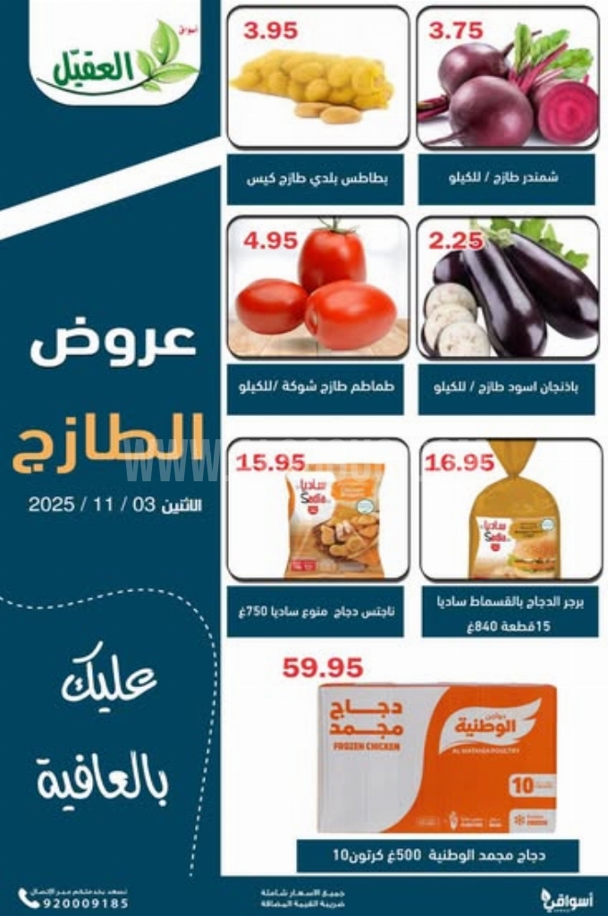 عروض أسواق العقيل اليوم 4 نوفمبر 2025 الموافق 13 جمادى الاولى 1447 عروض الطازج