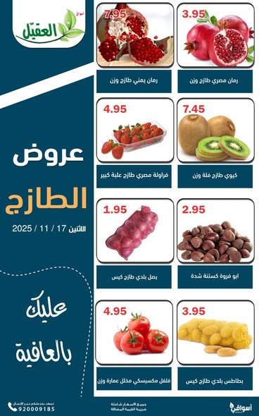 عروض العقيل اليوم 17 نوفمبر 2025 الموافق 25 جمادى الاولى 1447 تسوق أحدث الاختيارات
