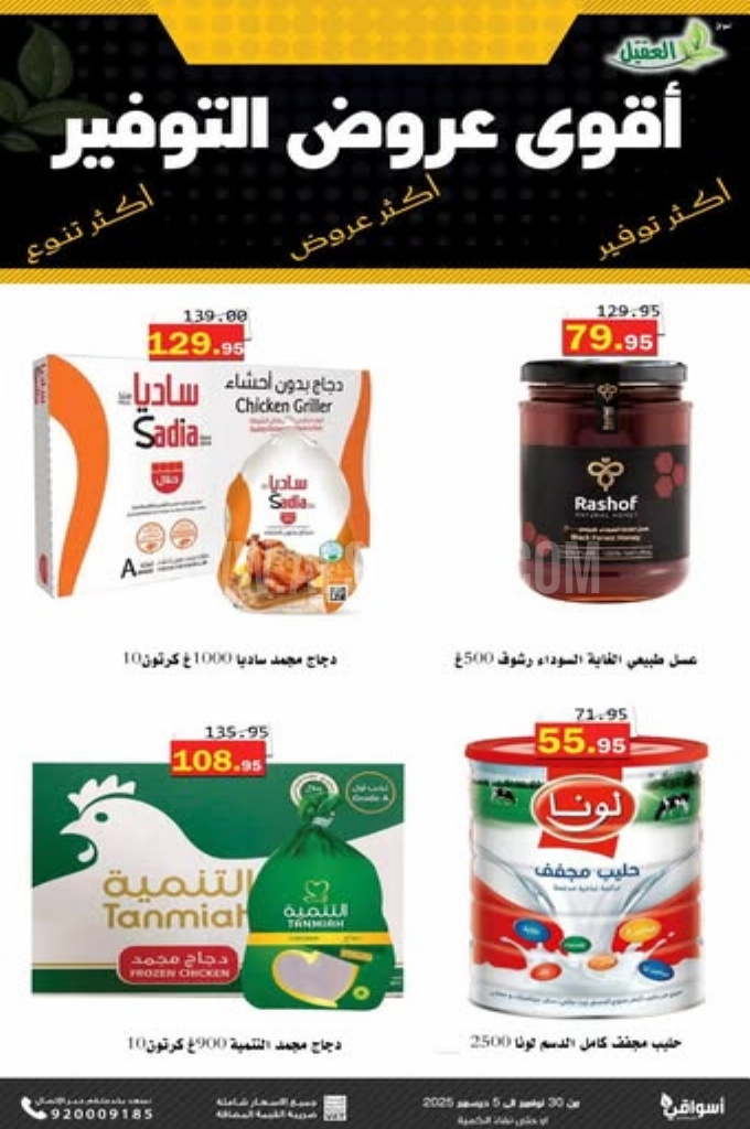 عروض العقيل اليوم 30 نوفمبر 2025 الموافق 9 جمادى الاخر 1447 أقوى عروض التوفير