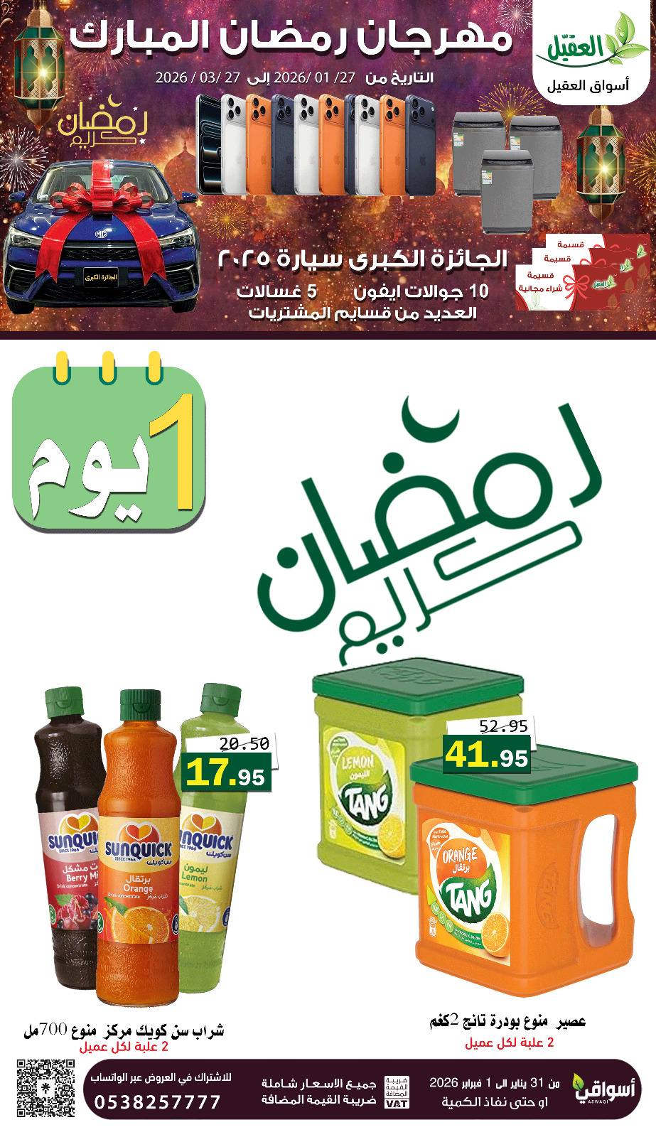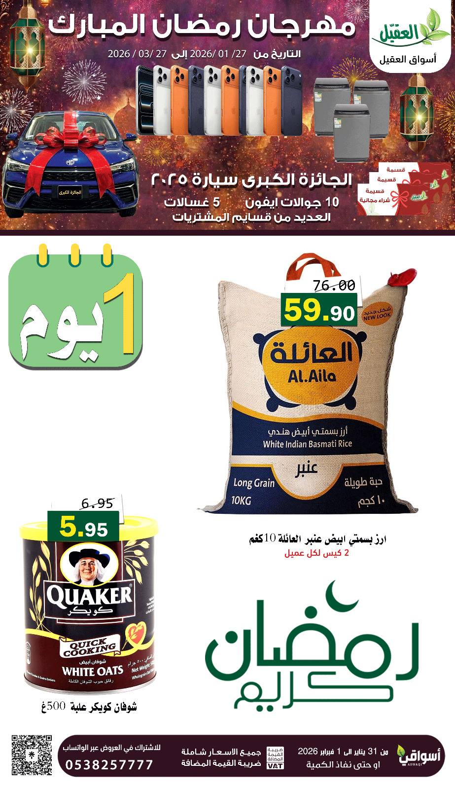 عروض العقيل اليوم 31 يناير 2026 الموافق 12 شعبان 1447 رمضان كريم