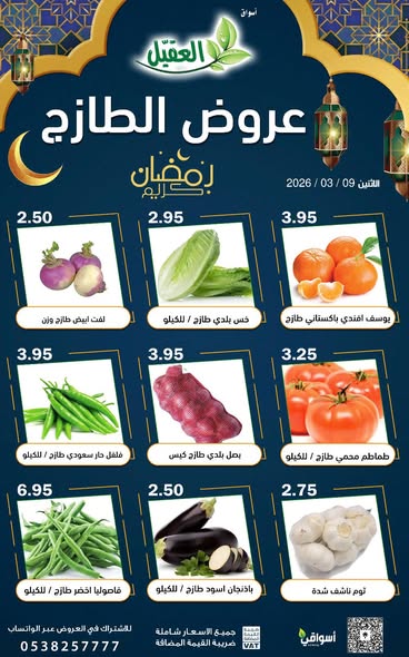 عروض العقيل اليوم 9 مارس 2026 | 19 رمضان 1447 عرض الطازج الاثنين