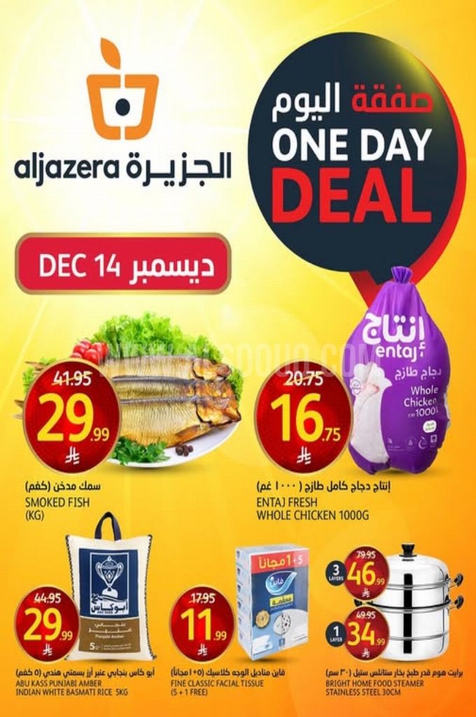 عروض أسواق الجزيرة اليوم 14 ديسمبر 2025 الموافق 23 جمادى الاخر 1447 عروض صفقة اليوم . استعد لخصومات مذهلة وصفقات لا تقبل المنافسة تسوق منتجاتك المفضلة بأسعار لا تقاوم.