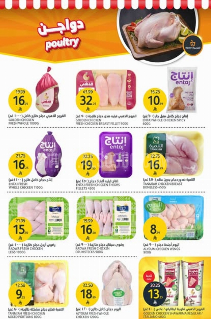 عسل نحل صافي لانجنيز (500 جرام). تونة الخير خفيفة متماسكة (185 جرام). قهوة دافيدوف فاخرة إسبريسو لايت. شاي تتلي أسود مركز (100 كيس). أرز أبو كاس مزة هندي بسمتي (5 كيلو). زبدة أو لبنة داري تركية (700 جرام). جبنة المراعي شيدر (56 جرام + 5). زيت زيتون بكر ريچ بايتوتي (500 مل). مناديل فاين للأطفال مبللة (2+1 عبوات 72 قطعة). عنب أحمر أميفيا (1015 جرام) وإليكم الصور الآتية على موقع عروض