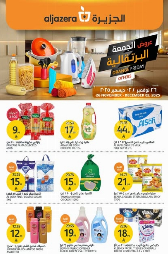عروض أسواق الجزيرة اليوم 26 نوفمبر 2025 الموافق 5 جمادى الاخر 1447 عروض الجمعة البرتقالية . استعد لخصومات مذهلة وصفقات لا تقبل المنافسة تسوق منتجاتك المفضلة بأسعار لا تقاوم.